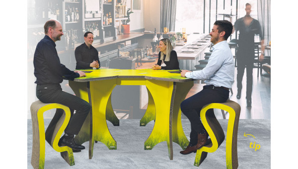 Displaymaker Holbox heeft een modulaire afstandtafel bedacht, waar iedereen op ten minste 1,5 meter afstand…