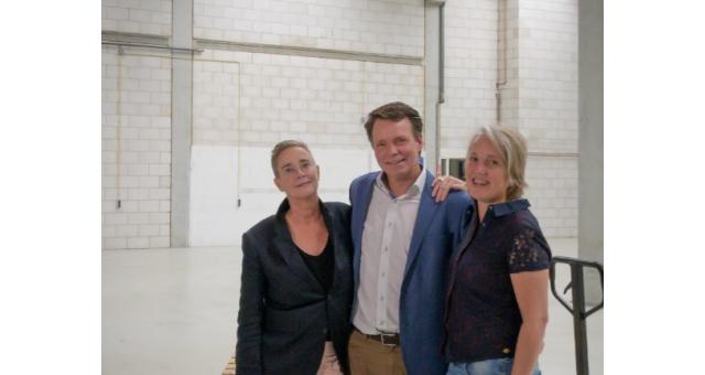 Foto: In het nu nog lege pand aan de Gyroscoopweg in Amsterdam v.l.n.r.: Jacqueline van As, Robbert Amse, commercieel directeur press & packaging bij Wifac en Tanneke Janssen.