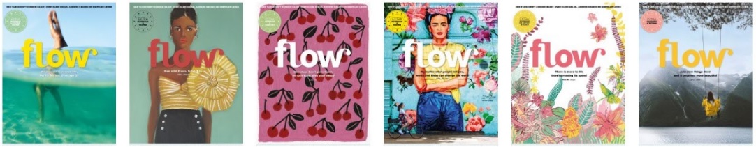 Onze missie: ‘Flow is a worldwide platform that inspires people with life lessons about slowing down and simplifying life in today’s fast-changing society.’ Flow is opgericht in 2008 door de huidige creative directors en is de afgelopen tien jaar uitgegroeid tot internationale titel. Flow verschijnt in vier talen in veertig landen. Flow wordt internationaal geroemd en groeit hard in de USA. Er is een succesvolle licentiedeal met de Amerikaanse uitgeverij Workman. Speciaal voor de Engelstalige markt maakt het Nederlandse team samen met deze Amerikaanse uitgever boeken, kalenders en stationery, waaronder A Book That Takes Its Time, een bestseller waarvan al ruim 200.000 exemplaren zijn verkocht.