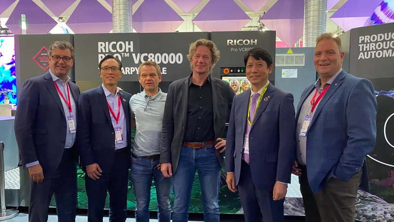De Ricoh Pro VC80000 rotatieve kleureninkjetpers, één van de beursprimeurs op Drupa, verhuist van Düsseldorf…